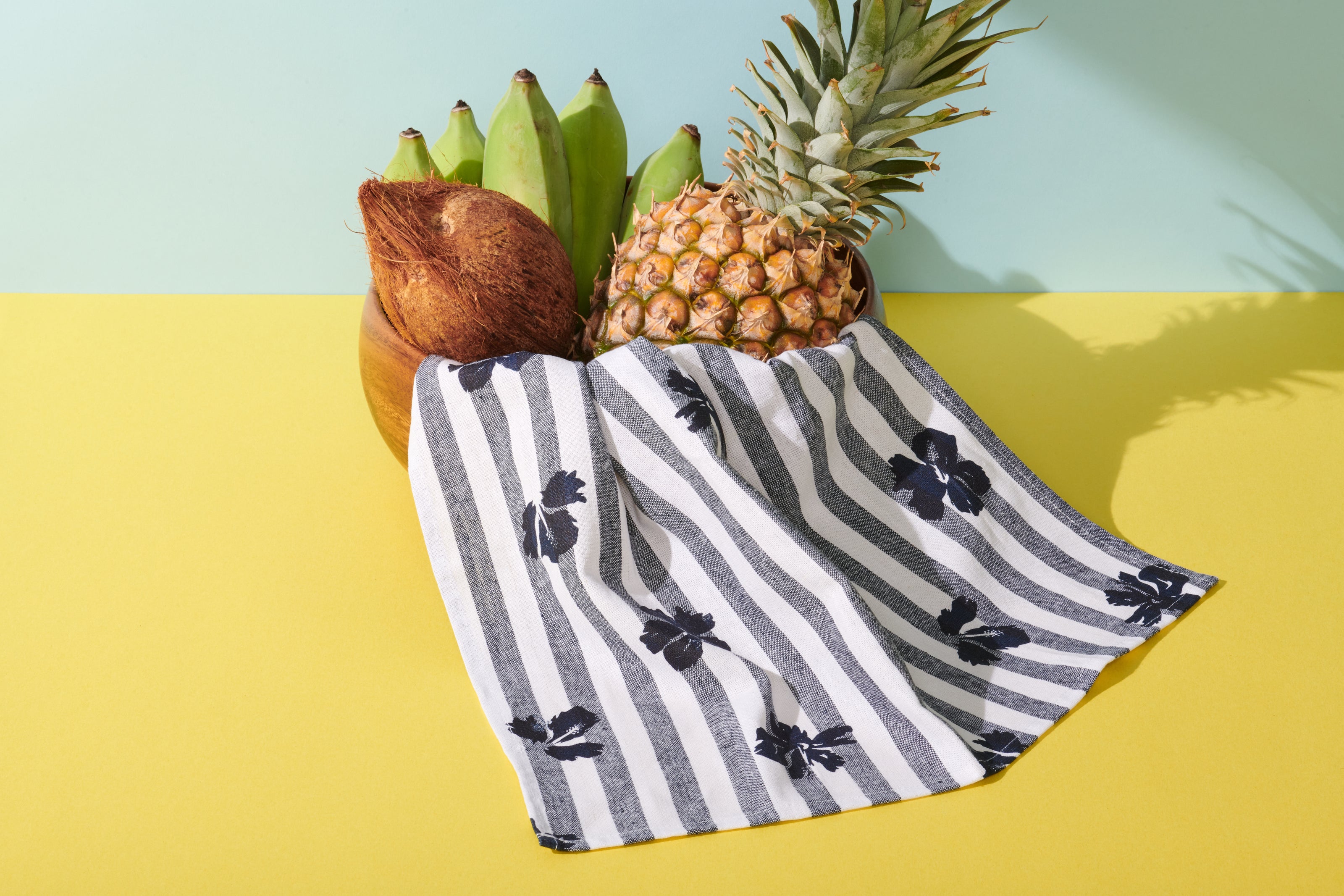 Princeville Hibiscus Linen Napkin Set - Nautical Stripe
