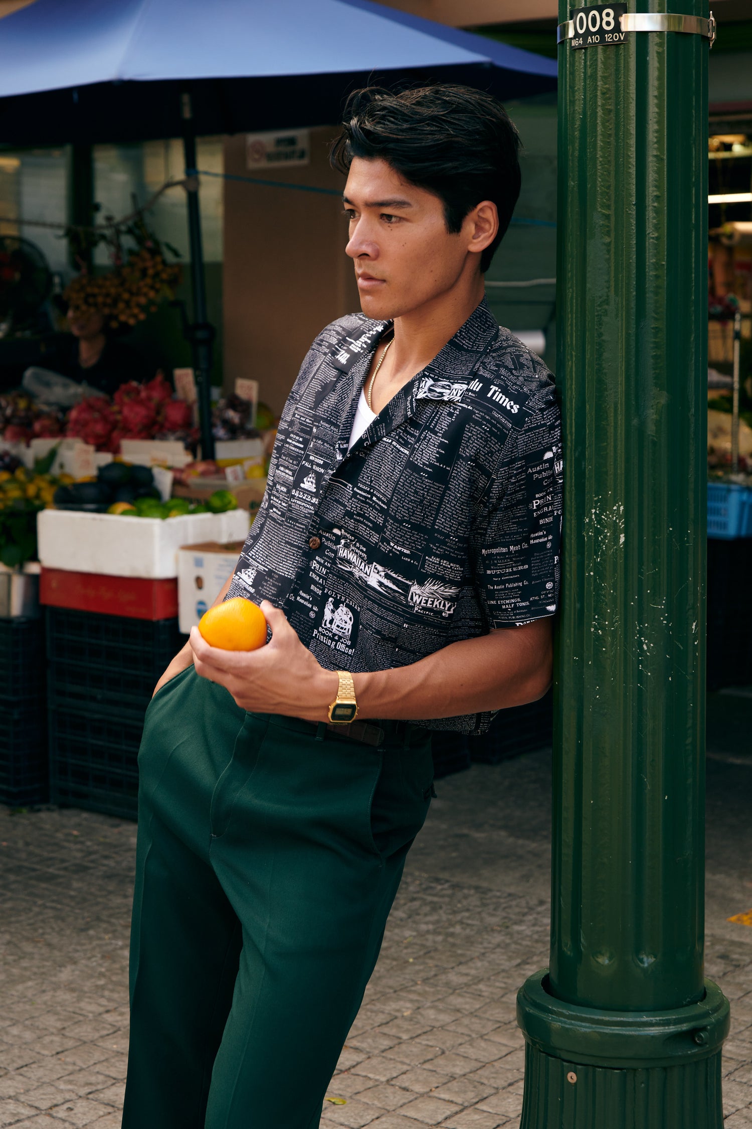 A reprint of this best-seller, but in a new colorway and in this new shape. Old News tells the story of a time past the bustling port of Honolulu and turn of the century Chinatown.
