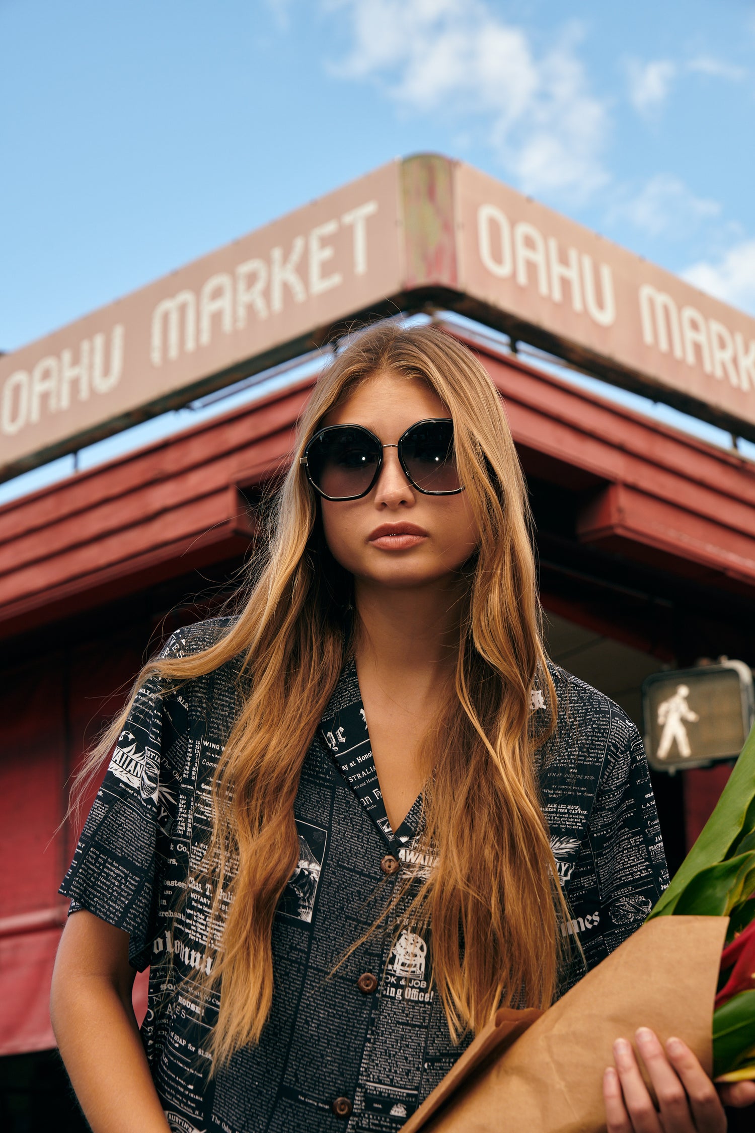 A reprint of this best-seller, but in a new colorway and in this new shape. Old News tells the story of a time past the bustling port of Honolulu and turn of the century Chinatown.