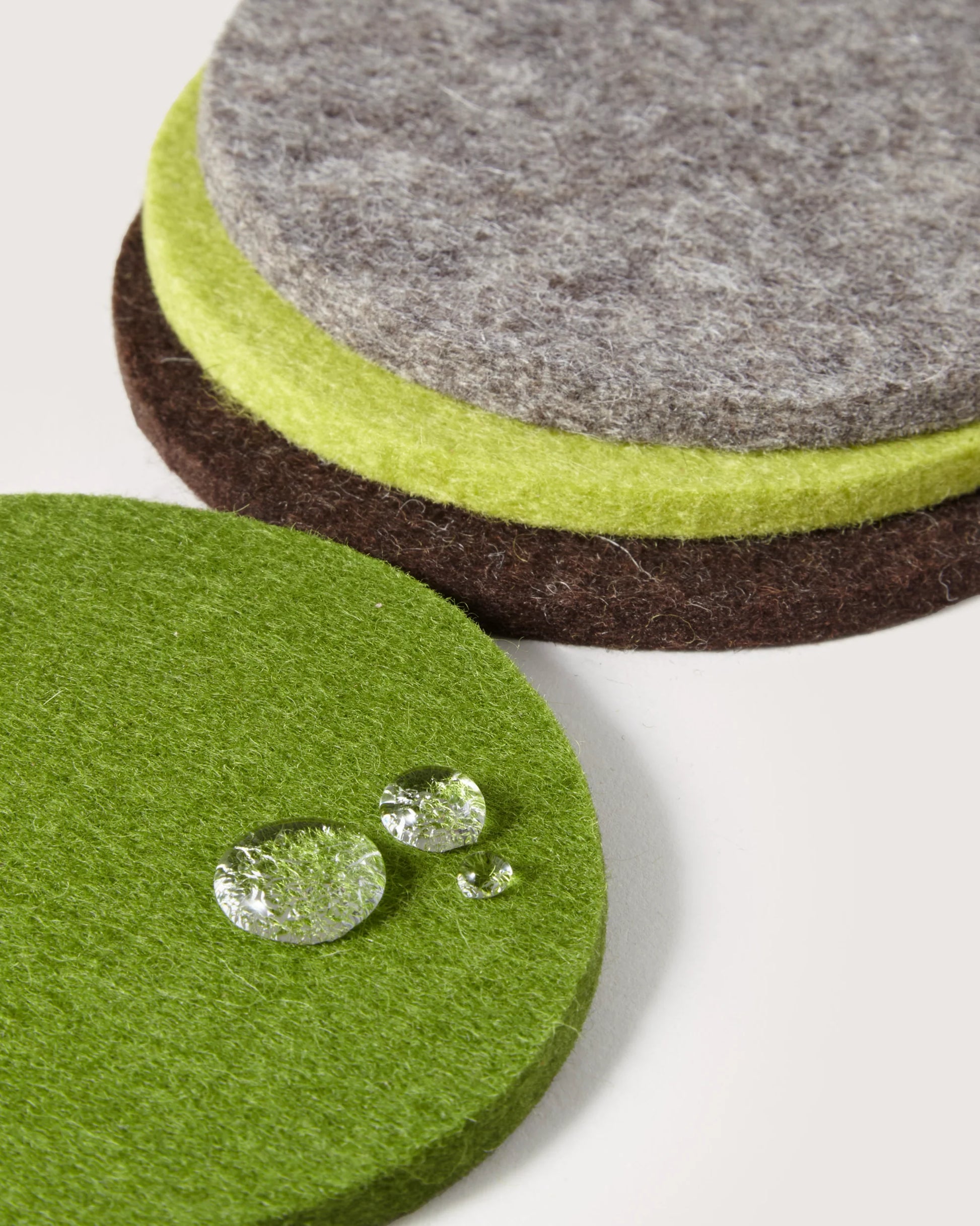 Merino wool is among the most hydrophilic natural fibers, capable of absorbing up to 30% of its weight without feeling damp. Our traditional Bierfilzl—German for "Beer Felt"—are crafted from the highest quality German Merino wool, offering durability with an elegant, heritage-inspired touch. Their clean, minimal design brings a refined modern accent to any home décor.