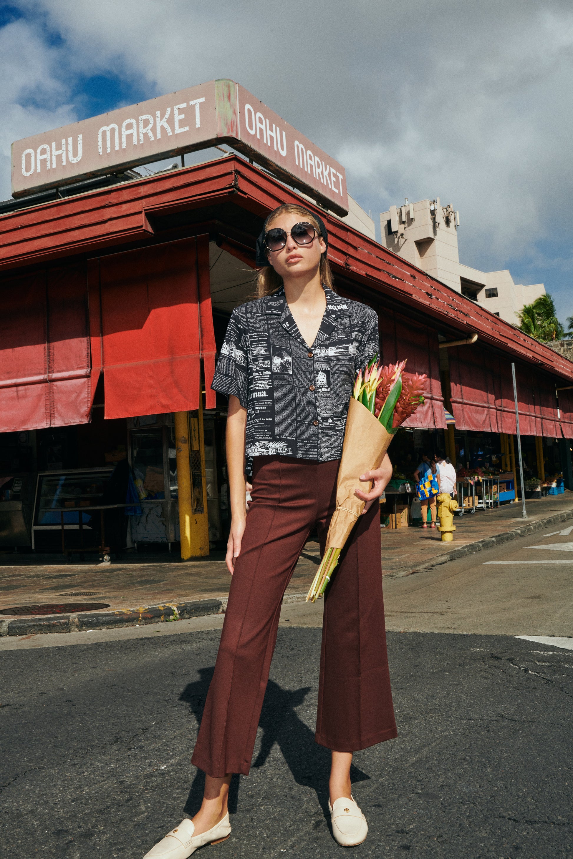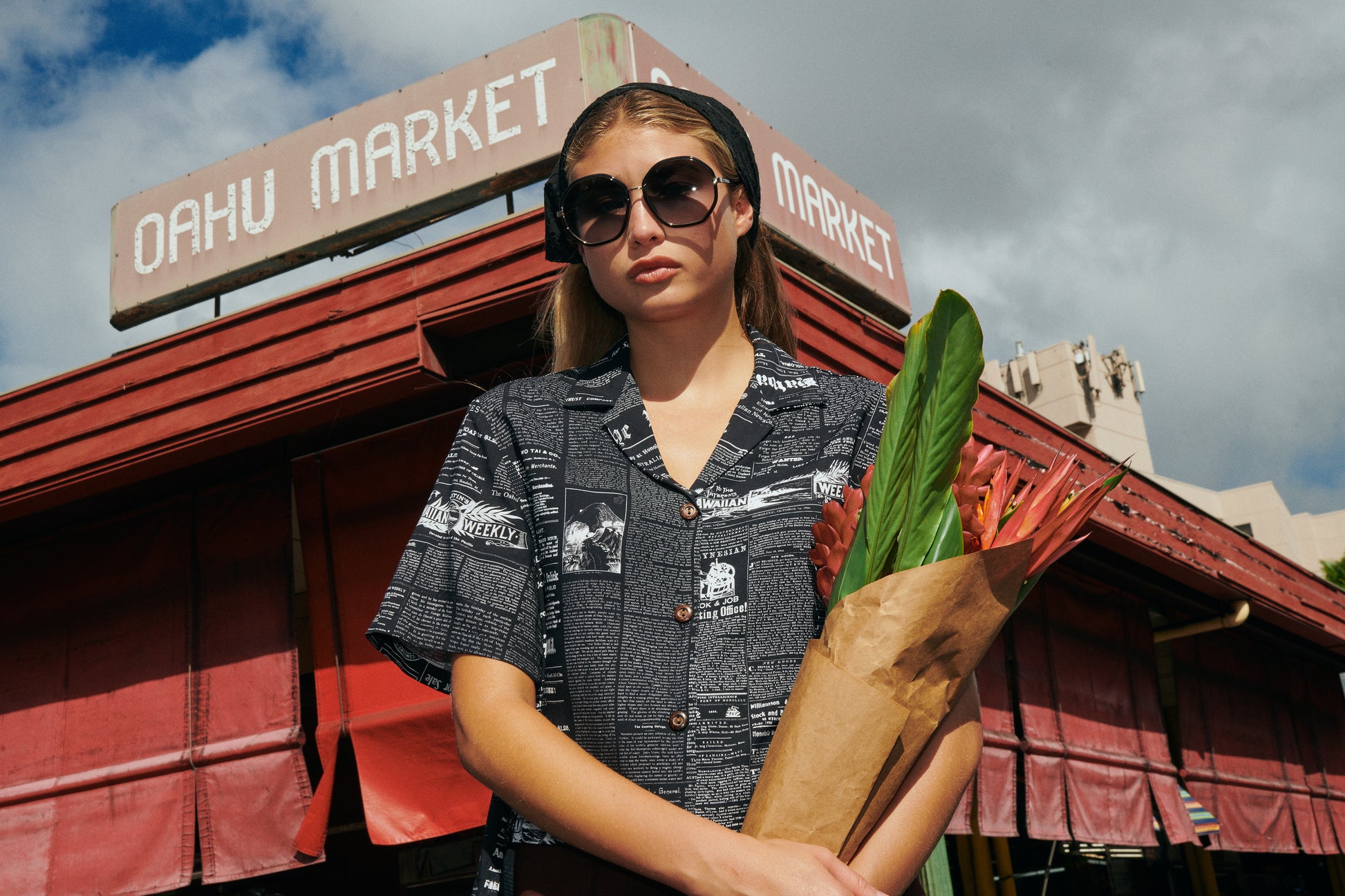 Old News is an original print Roberta Oaks shirt featuring a collage of select excerpts from thirteen island newspapers dated 1840 to 1912, offering a snapshot of the bustling port of Honolulu at Aloha Tower and the vibrant streets of Chinatown. From ship manifests listing arriving passengers to classified ads for lost pets and available homes, the print captures the lively commerce, community, and character of a historic era. As a retail store owner in Chinatown, this design holds personal meaning—evoking a time when horse-drawn carriages lined the streets, saloons buzzed with life, and every detail was crafted with care. Printed with the skill and craftsmanship of a bygone age, Old News invites you to wear a piece of Honolulu's rich heritage.