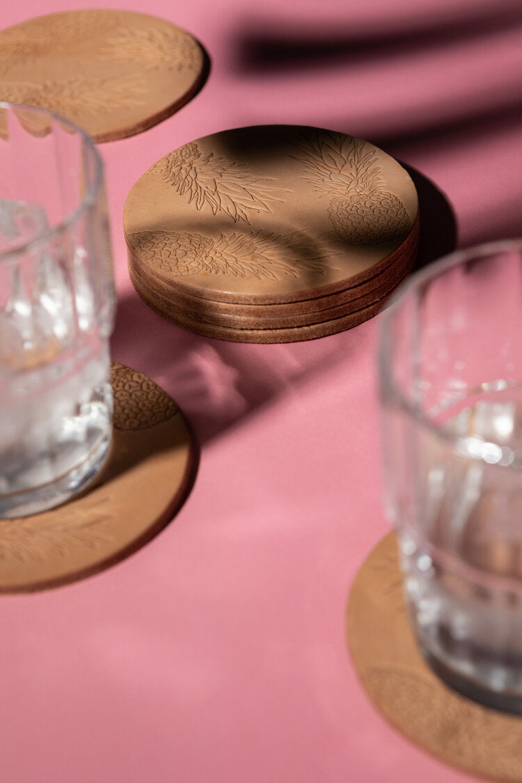 Pineapple Coasters - Natural Leather